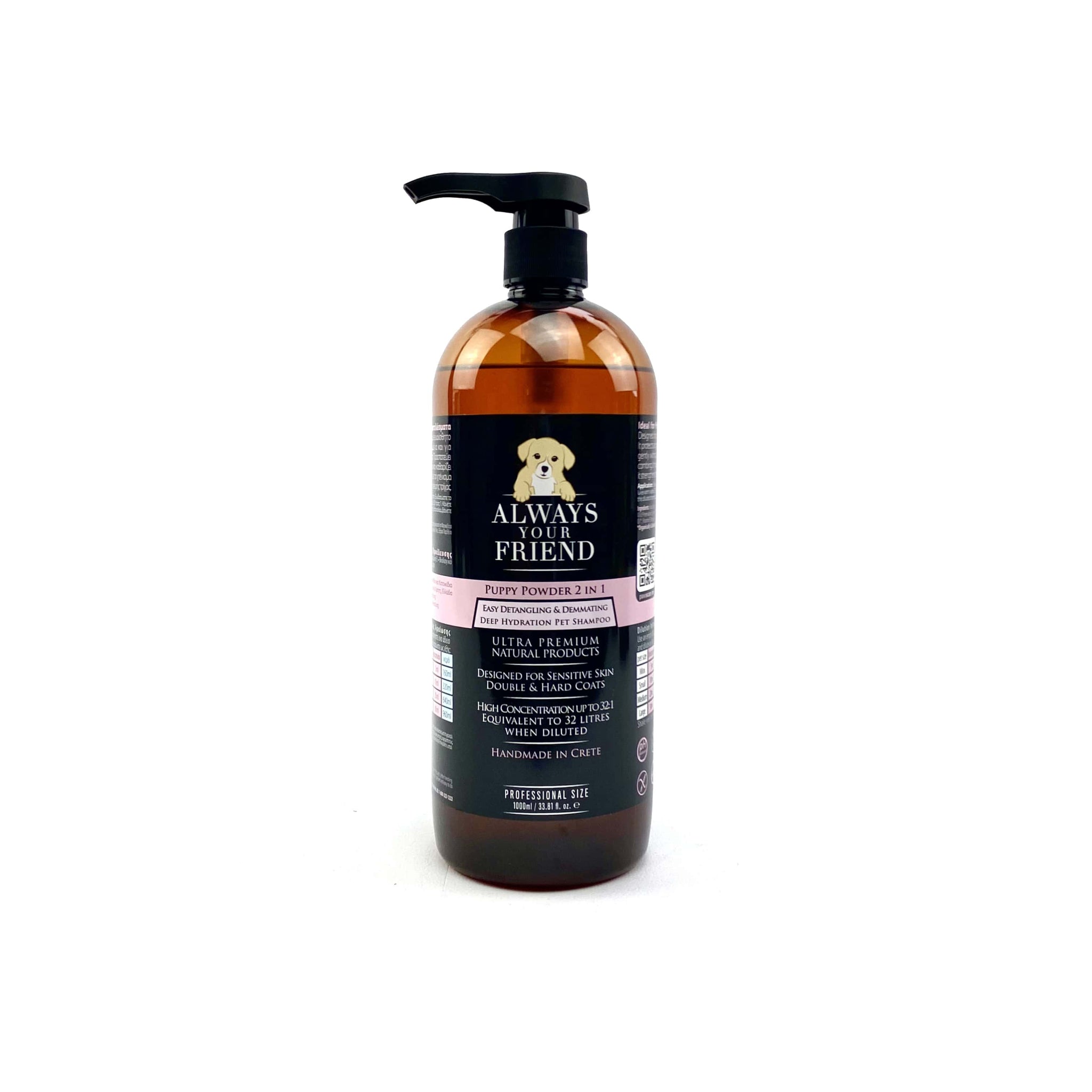 Fresh and gentle like a puppy's touch, Puppy Powder Shampoo has a conditioning composition and a real powder scent. It is created with natural herbs for the care of the hair and the skin. Designed for pets with sensitive skin and puppies. It protects and moisturizes delicate skin and washes gently without irritations. It restores the natural oil of the skin while making the hair shiny, and soft.